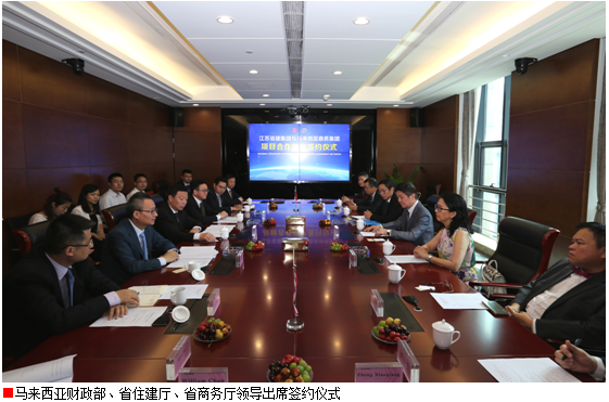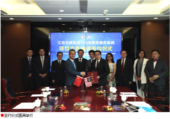 7月17日上午,江蘇省建集團(tuán)與馬來(lái)西亞鼎昇集團(tuán)就馬來(lái)西亞80億元人民可負(fù)擔(dān)房屋項(xiàng)目舉行合作簽約儀式。馬來(lái)西亞財(cái)政部副部長(zhǎng)拿督李志亮及夫人拿汀李善純、馬來(lái)西亞鼎昇集團(tuán)董事長(zhǎng)拿督賴(lài)俊瀚,江蘇省住房城鄉(xiāng)建設(shè)廳黨組書(shū)記顧小平、江蘇省商務(wù)廳副廳長(zhǎng)朱益民、江蘇省商務(wù)廳外經(jīng)處處長(zhǎng)陸堅(jiān)、江蘇省建筑管理總站站長(zhǎng)李震、江蘇省建集團(tuán)總裁仇天青等出席儀式。